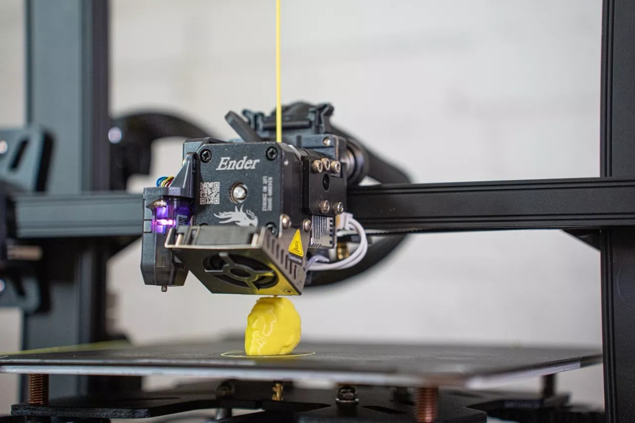 Egy animátor professzionális 3D szkenner segítségével néhány másodperc alatt elkészíti a digitális modellt, amelyet közvetlenül a 3D nyomtatóhoz továbbítunk.